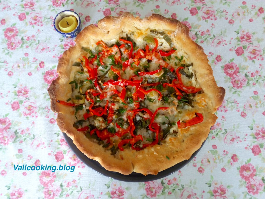 3.5 Distribute peppers and leek rings. Do it beautifully in an artistic manner.